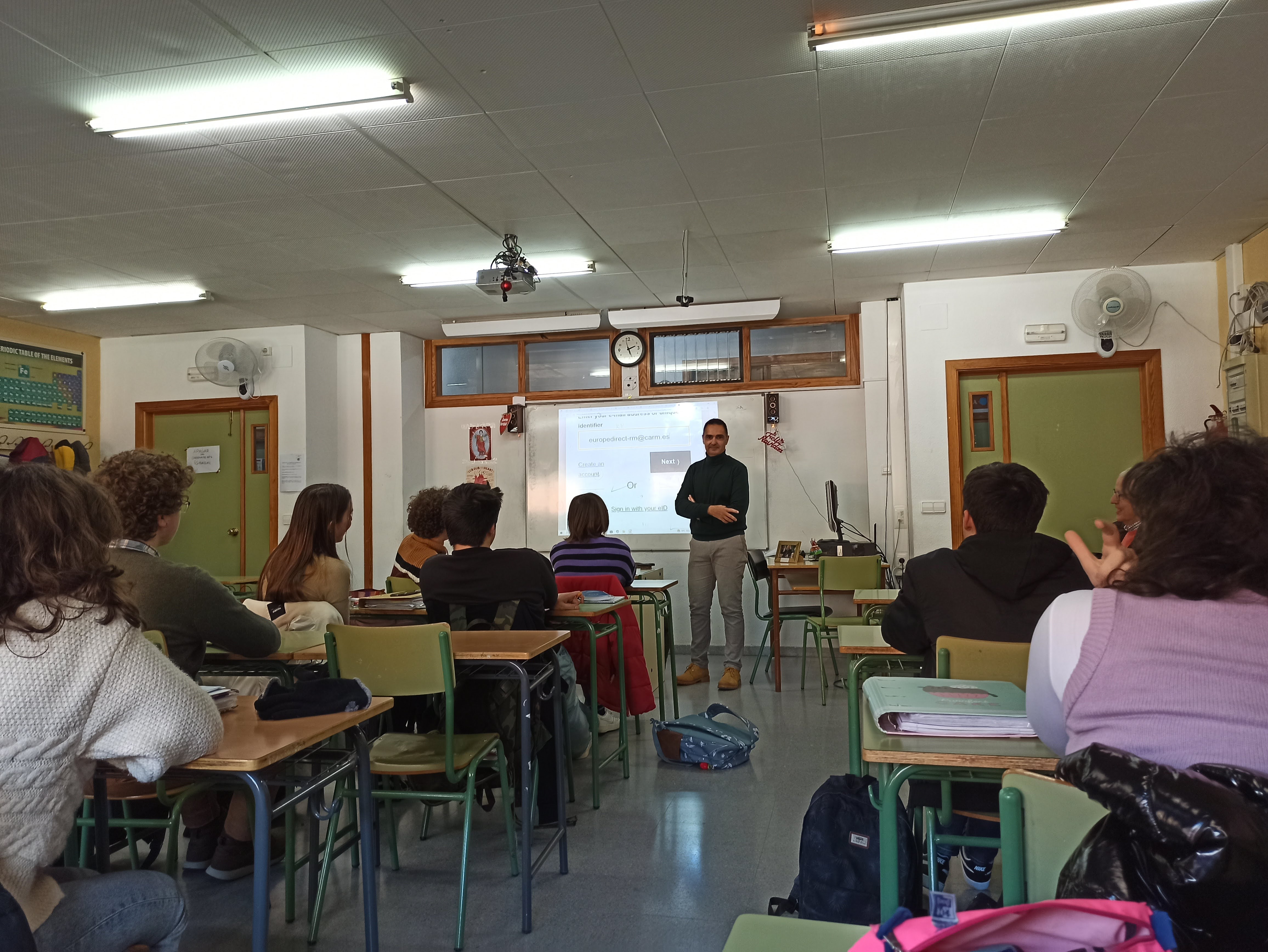 Enmarcado en la Semana Cultural "Europa en el corazón", del IES Juan Carlos I de Murcia, impartimos una charla a los alumnos de 2º curso de bachillerato de investigación, sobre las oportunidades de formación y empleo que les brinda la Unión Europea. Les mostramos redes como Eures, Eurodissey, así como herramientas como Europass.
