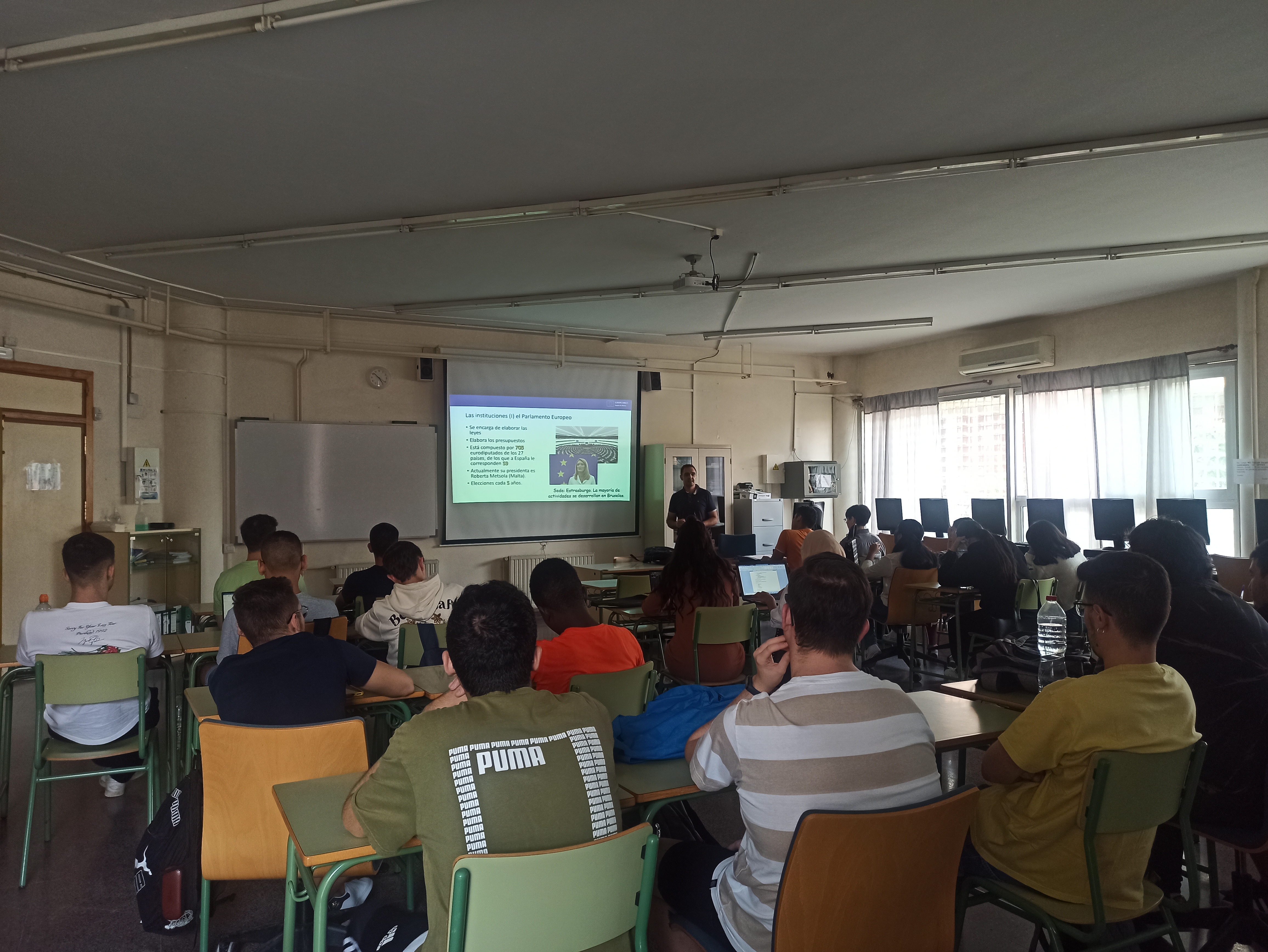 La primera, con un grupo de alumnos de aproximadamente 20 años, trató sobre la historia, símbolos e instituciones de la Unión Europea. Además hablamos sobre las ventajas de ser ciudadano de un Estado miembro.