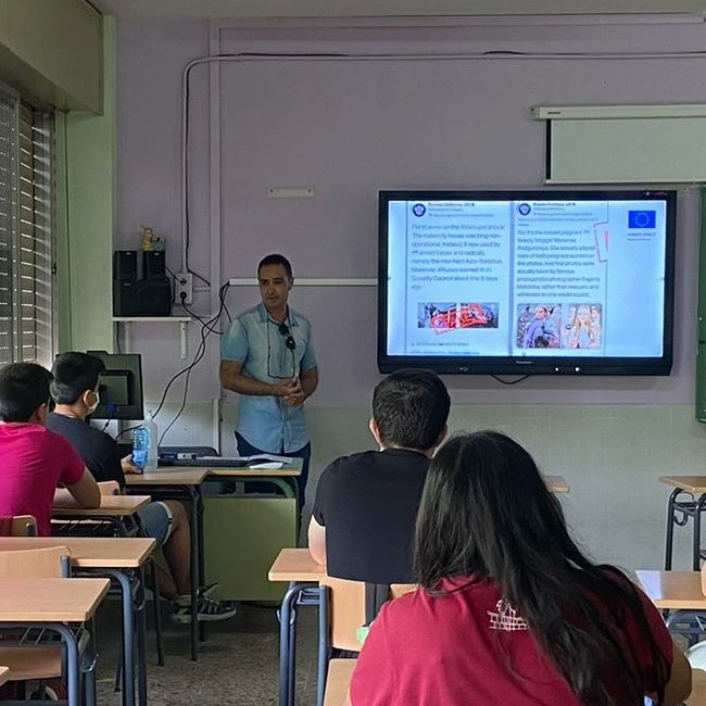 En las charlas se explicó con ejemplos prácticos que era la desinformación y que formas adopta, así como los modos en los que las instituciones europeas están luchando contra este fenómento. También se les enseñaron técnicas y tecnologías que les ayuden a detectar informaciones falsas, imágenes manipuladas, etc.