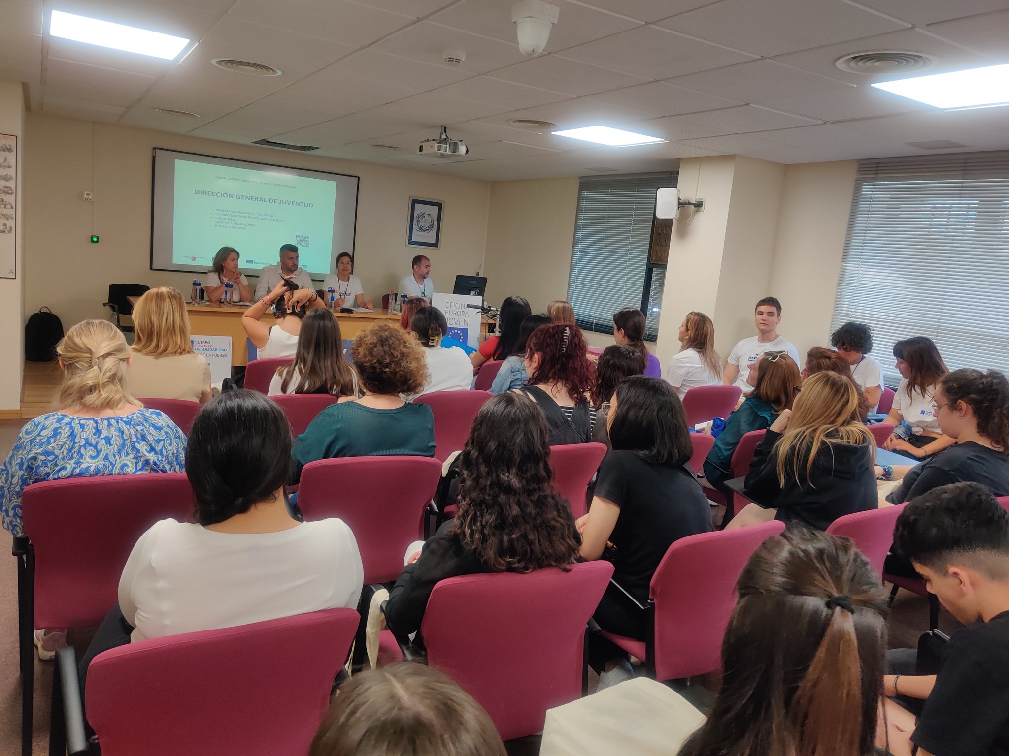 • Oportunidades para jóvenes en la Unión Europea, organizada por la Dirección General de Juventud, y en la que intervinieron José Manuel López, Director General de Juventud; Encarna Marín y M. France Pérez, de la Dirección General de Juventud; Ginés Navarro, de la Asociación Cultural Euroacción; además de contar con la colaboración de Cazalla Intercultural, Red Internacional B-Live, Asociación Región de Murcia Limpia y jóvenes participantes en los programas Eurodisea, Cuerpo Europeo de Solidaridad y Erasmus+Juventud.