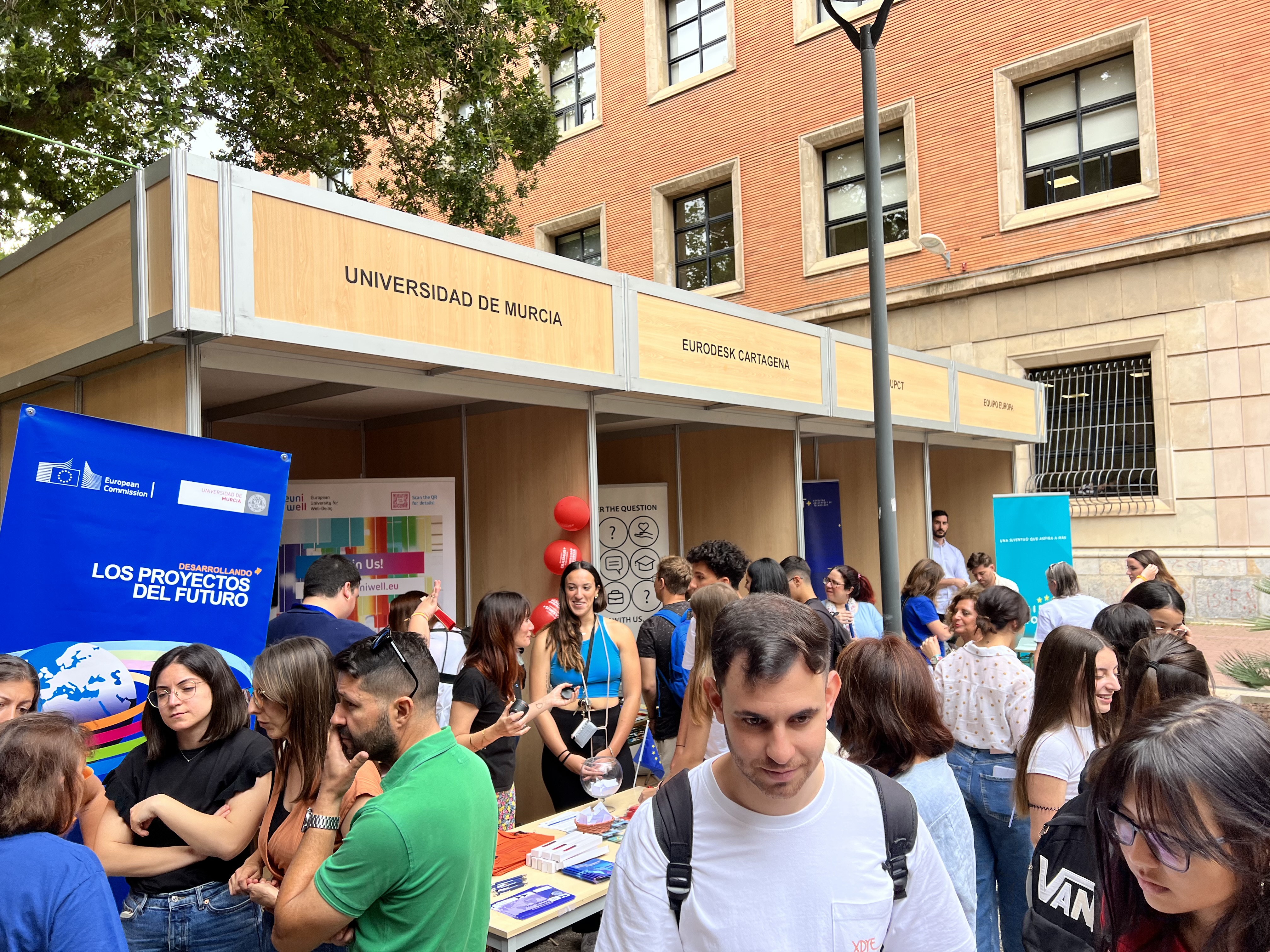 Entre los actos realizados en torno al Día de Europa,  organizamos en el patio de la Facultad de Letras de la Universidad de Murcia, en colaboración con la Cátedra de Asuntos Europeos de la Universidad de Murcia, la Feria "Acércate a Europa en la Región de Murcia".