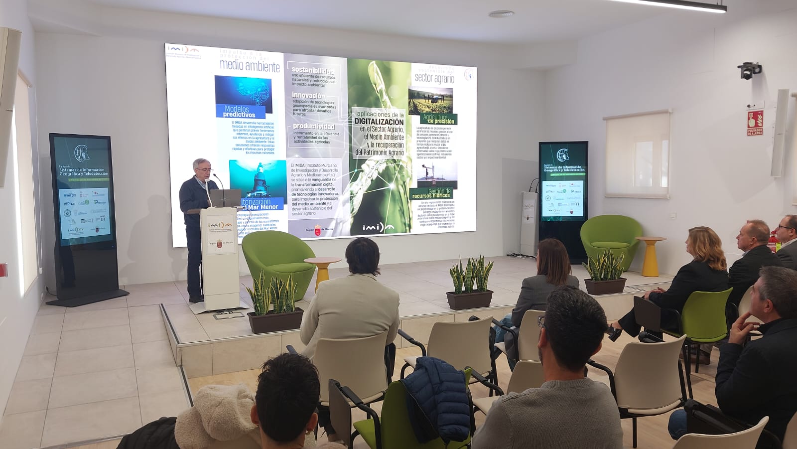 Responsables del IMIDA y del Equipo de Sistemas de Información Geográfica y Teledetección (SIGyT) mostraron a representantes del Ayuntamiento de Alcantarilla y de la Entidad de Saneamiento y Depuración de la Región de Murcia (Esamur) proyectos de digitalización en el sector agrario y el medio ambiente, así como en la recuperación del patrimonio agrario.