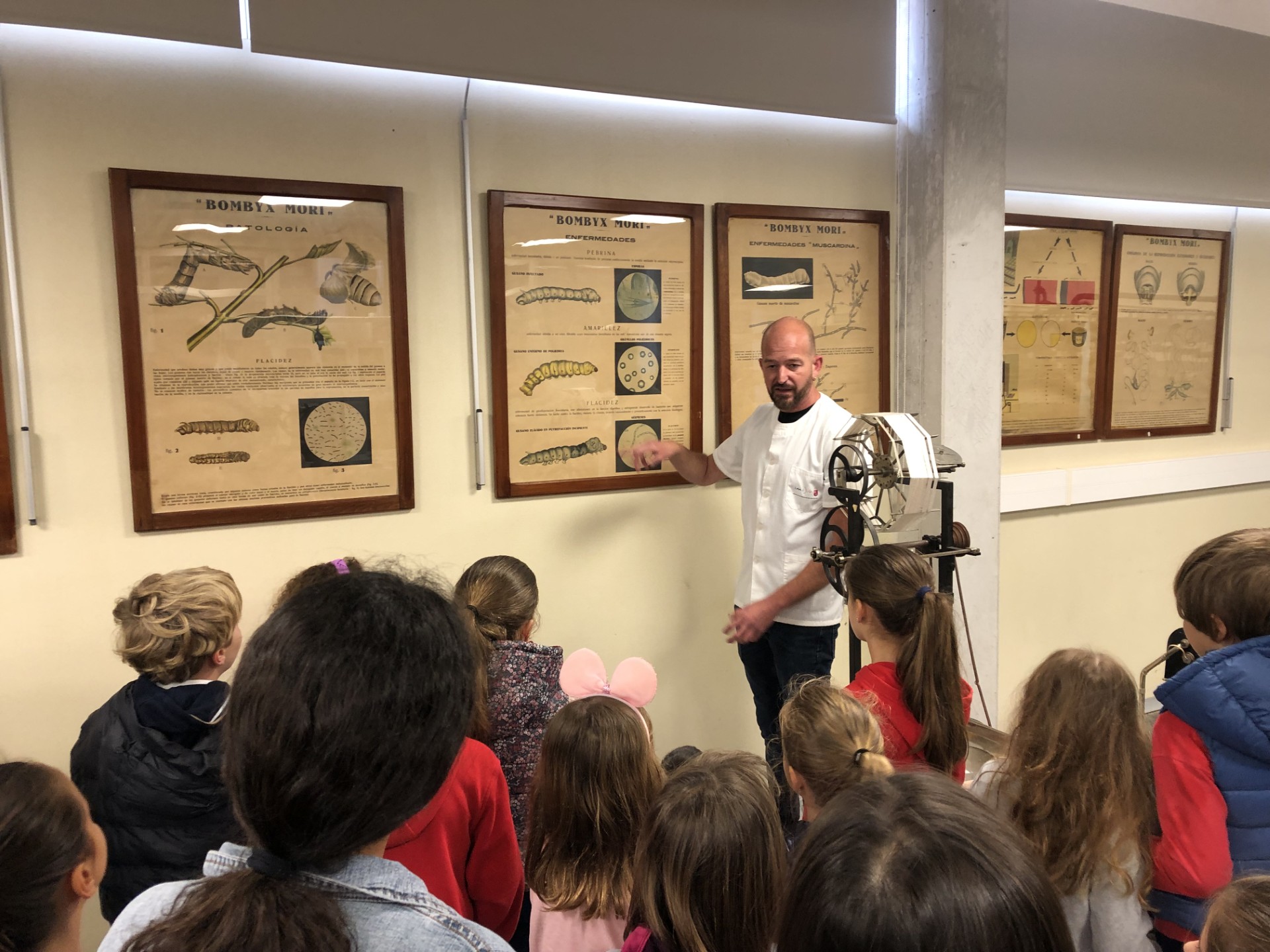 El Equipo de Biotecnología, de la mano de los investigadores Salvador Aznar y Ana Pagán, enseñó a los pequeños una breve historia sobre el gusano de seda y su Museo en el Instituto.